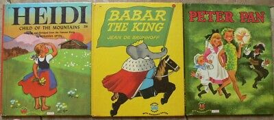 3 Vintage Wonder Books ~ PETER PAN, BABAR THE KING, HEIDI CHILD OF THE MOUNTAINS