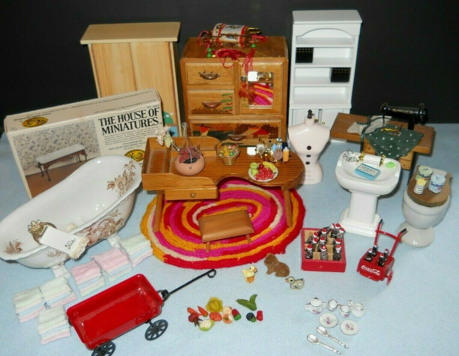 Vintage Doll Lot Dollhouse Dawn 1:12 Mid Century Wood Furniture Coca Cola Mixed