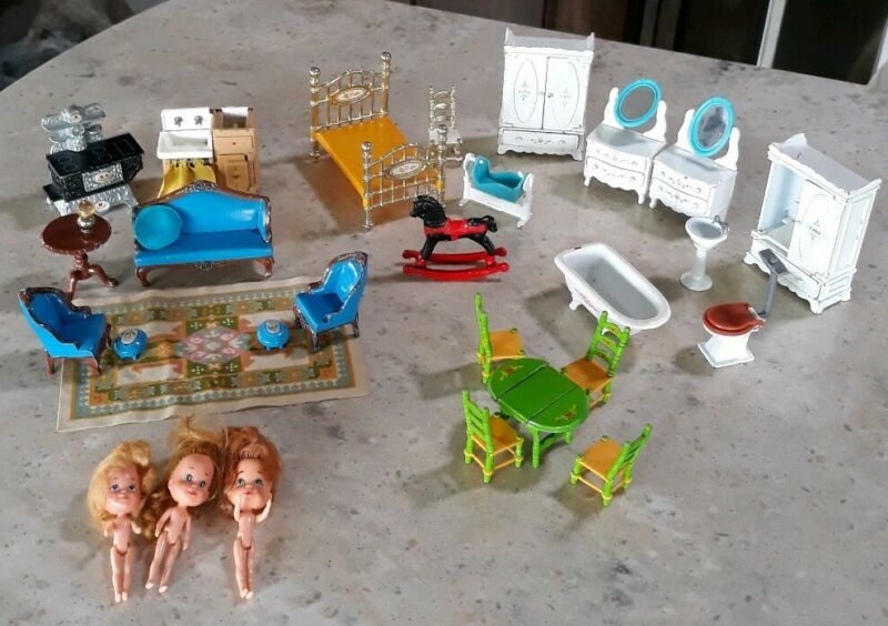 Title (ebay affiliate link): "HUGH LOT" Vintage 1980 Mattel THE LITTLES" Metal Die-Cast Dollhouse Furniture