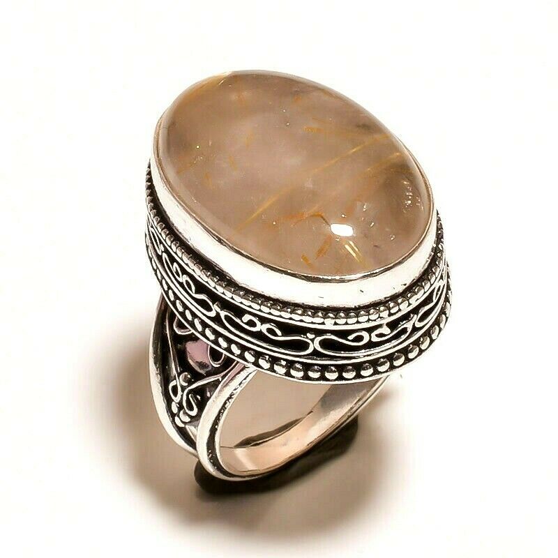 Title (ebay affiliate link): Charming Golden Needle Rutile Silver Carving Jewelry Ring Size 7.50 JA753