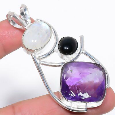 Title (ebay affiliate link): Amethyst, Rainbow Moonstone Gemstone Ethnic Handmade Jewelry Pendant 2.76"