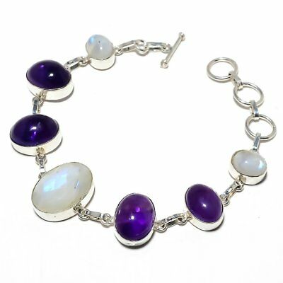 Title (ebay affiliate link): Rainbow Moonstone, Amethyst Gemstone Ethnic Handmade Jewelry Bracelet 7-8"