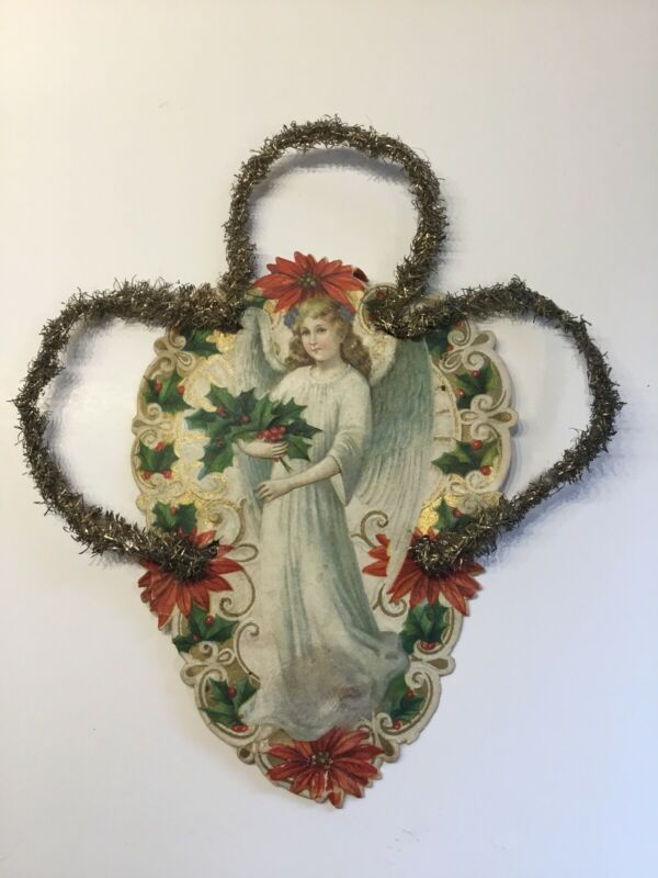 Title (ebay affiliate link): ANTIQUE VICTORIAN TINSEL CHRISTMAS ORNAMENT DIE-CUT ANGEL GIRL