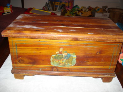 Child Doll Size Lge Cedar Chest Hinged Decal 40s