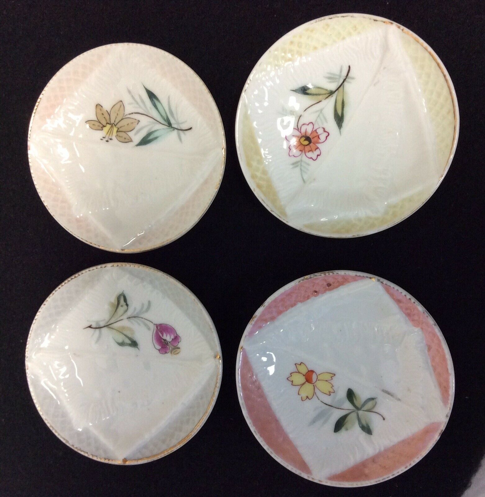 Title (ebay affiliate link): Complete numbered Set of 4 English Folded Napkin Butter Pat plate floral Vintage