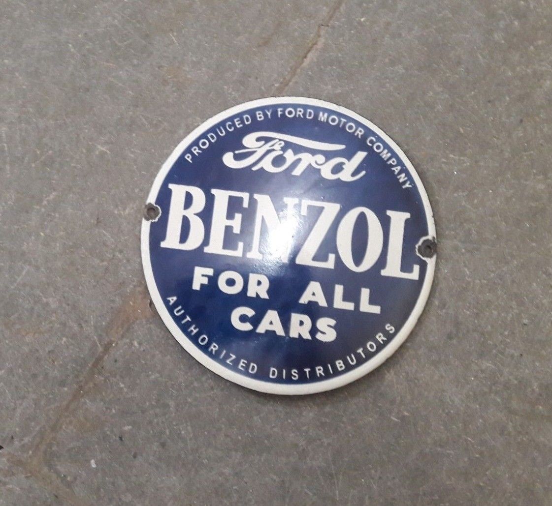Porcelain Ford Benzol Enamel Sign Size 6" Inch Round