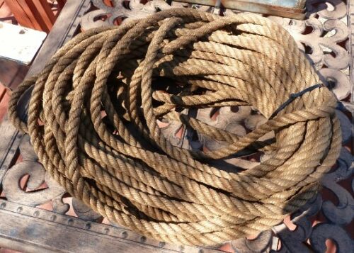 Vintage Primitive 1/2" Hemp Barn Rope 90 Ft Pulley Block Tackle Farm Nautical