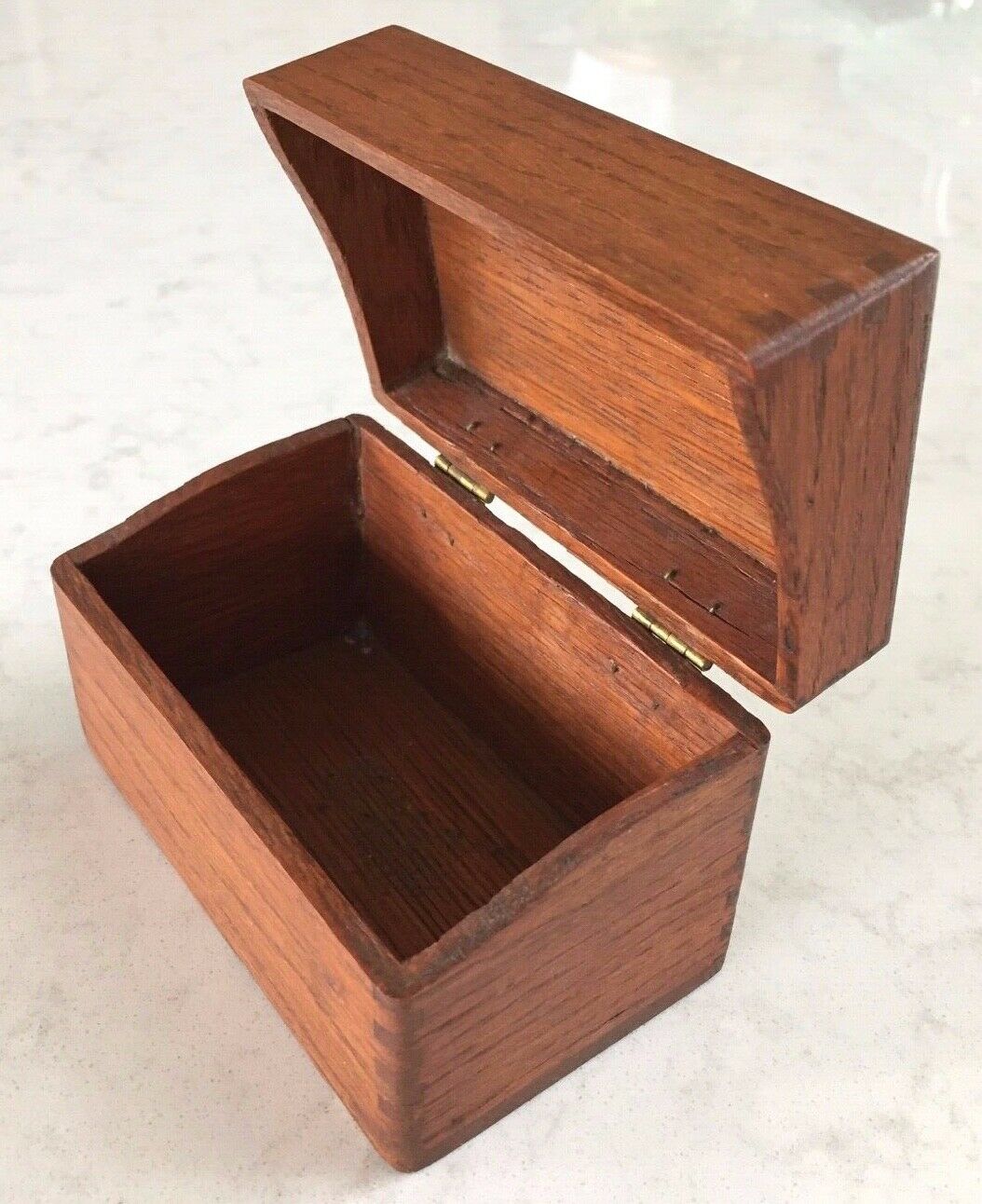 Title (ebay affiliate link): Antique Vintage SMALL DOVE-TAILED WOOD WOODEN BOX with GOLDTONE HINGES !
