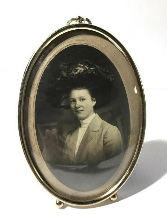 Title (ebay affiliate link): Antique portrait black and white photograph oval bubble frame 5"x7"
