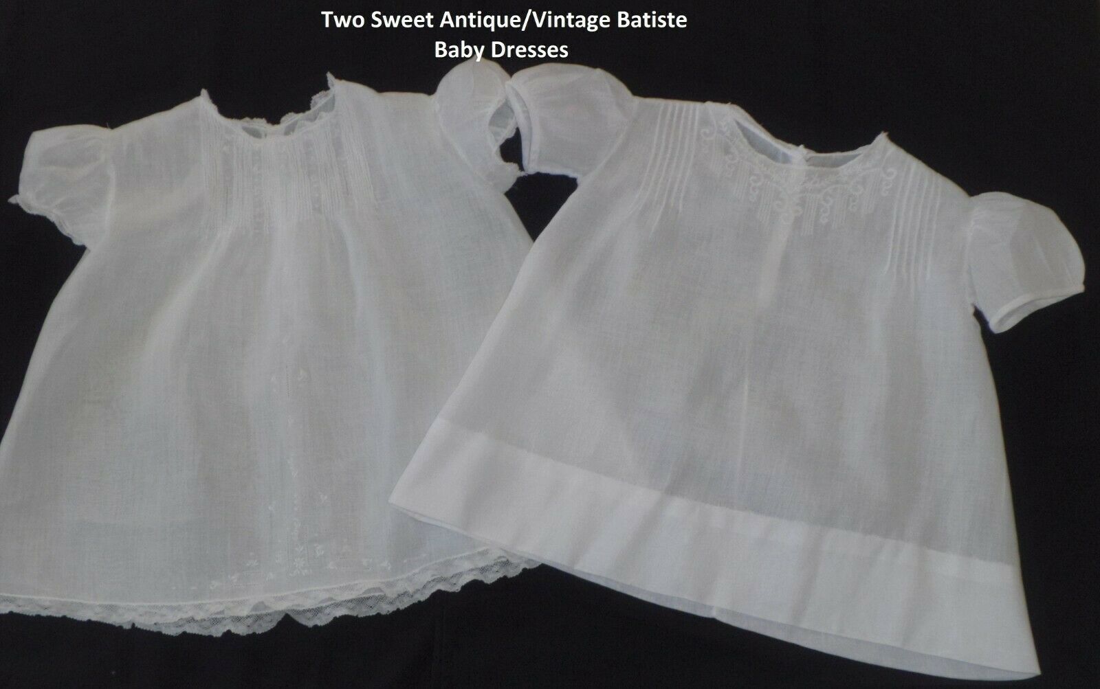Title (ebay affiliate link): 2 SWEET Antique/Vtg Baby Dresses/Batiste/Christening/Compo/Composition Baby Doll