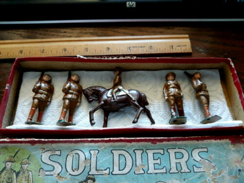 Title (ebay affiliate link): antique toys Occupied Japan lead set Infantry soldier figures + horse 1945 era