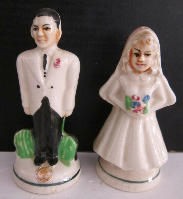 VTG Occupied Japan Double Sided Bride & Groom Young & Old Salt & Pepper Shakers