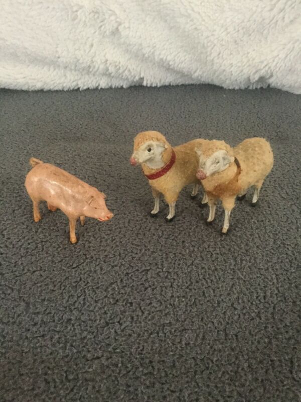 Title (ebay affiliate link): Putz 2 Sheep + Pig Germany Matchstick Leg Composition Christmas Nativity Toy Lot