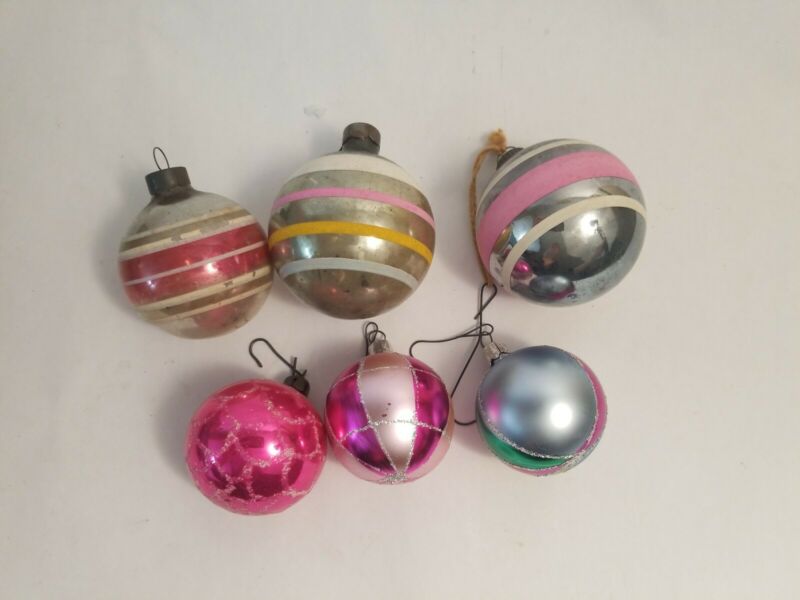 6 ANTIQUE CHRISTMAS GLASS BALL TREE ORNAMENTS GERMANY HAND PAINTED MERCURY GLASS