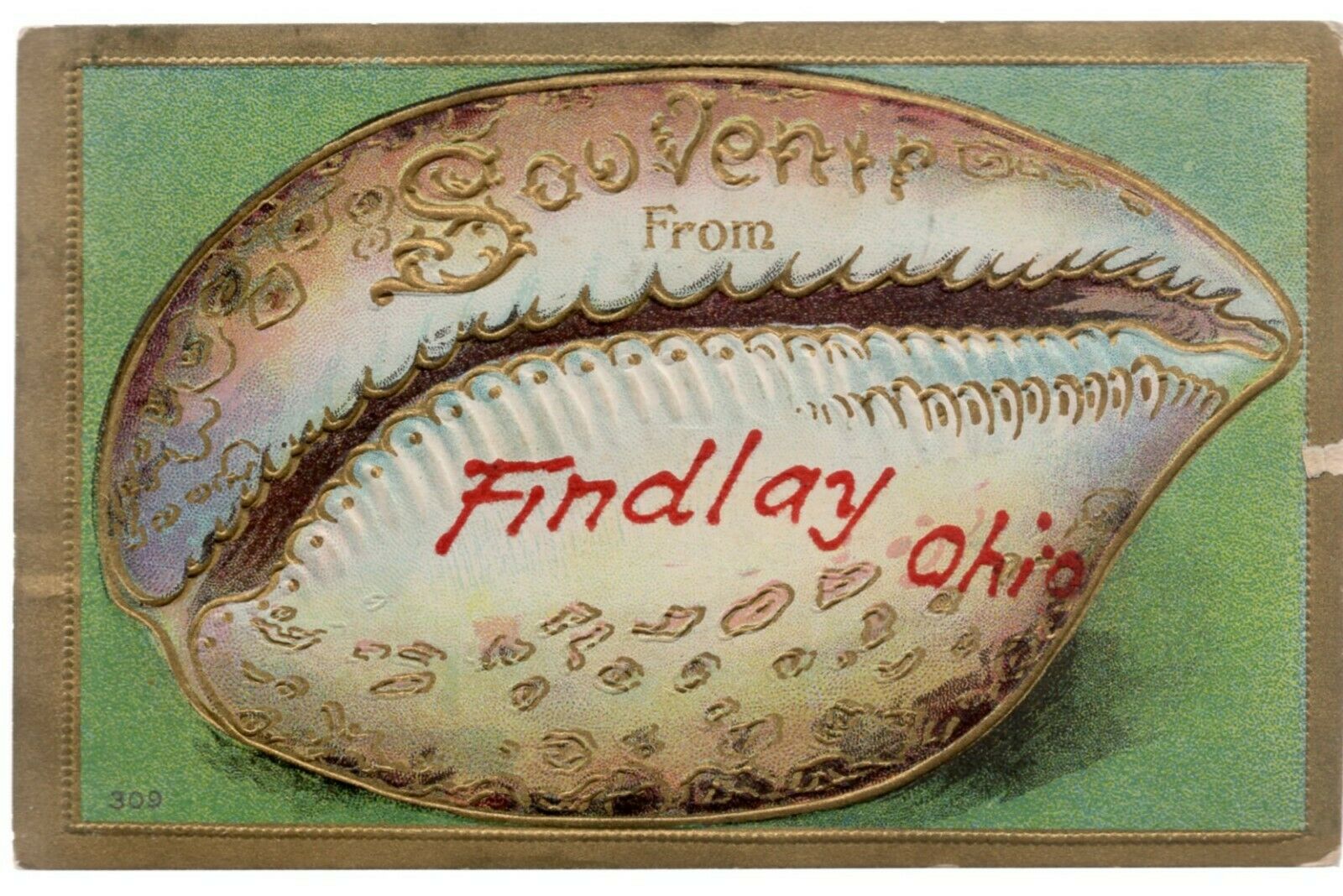 Title (ebay affiliate link): FINDLAY, OHIO, POSTCARD, SHELL SOUVENIR CARD. 1911