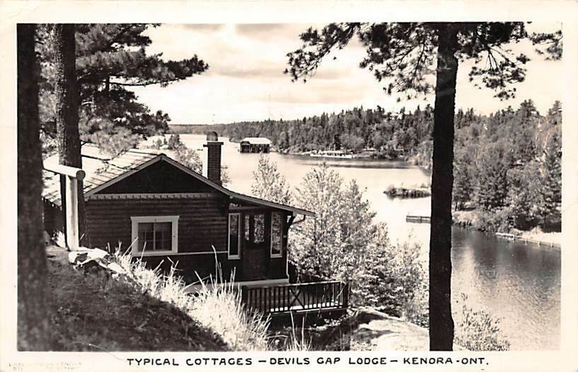 Title (ebay affiliate link): RPPC ~ Kenora, Ontario, CANADA ~ Typical Cottages ~ Devil''s Gap Lodge ~ 1944
