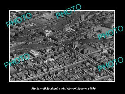 OLD LARGE HISTORIC PHOTO OF MOTHERWELL SCOTLAND, AERIAL VIEW OF TOWN c1950 2