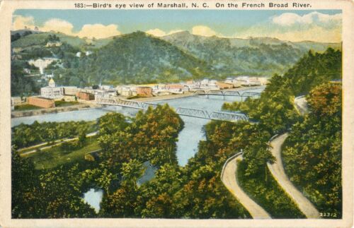 MARSHALL NC Birds Eye View French Broad River Carolina Antique Vintage Postcard