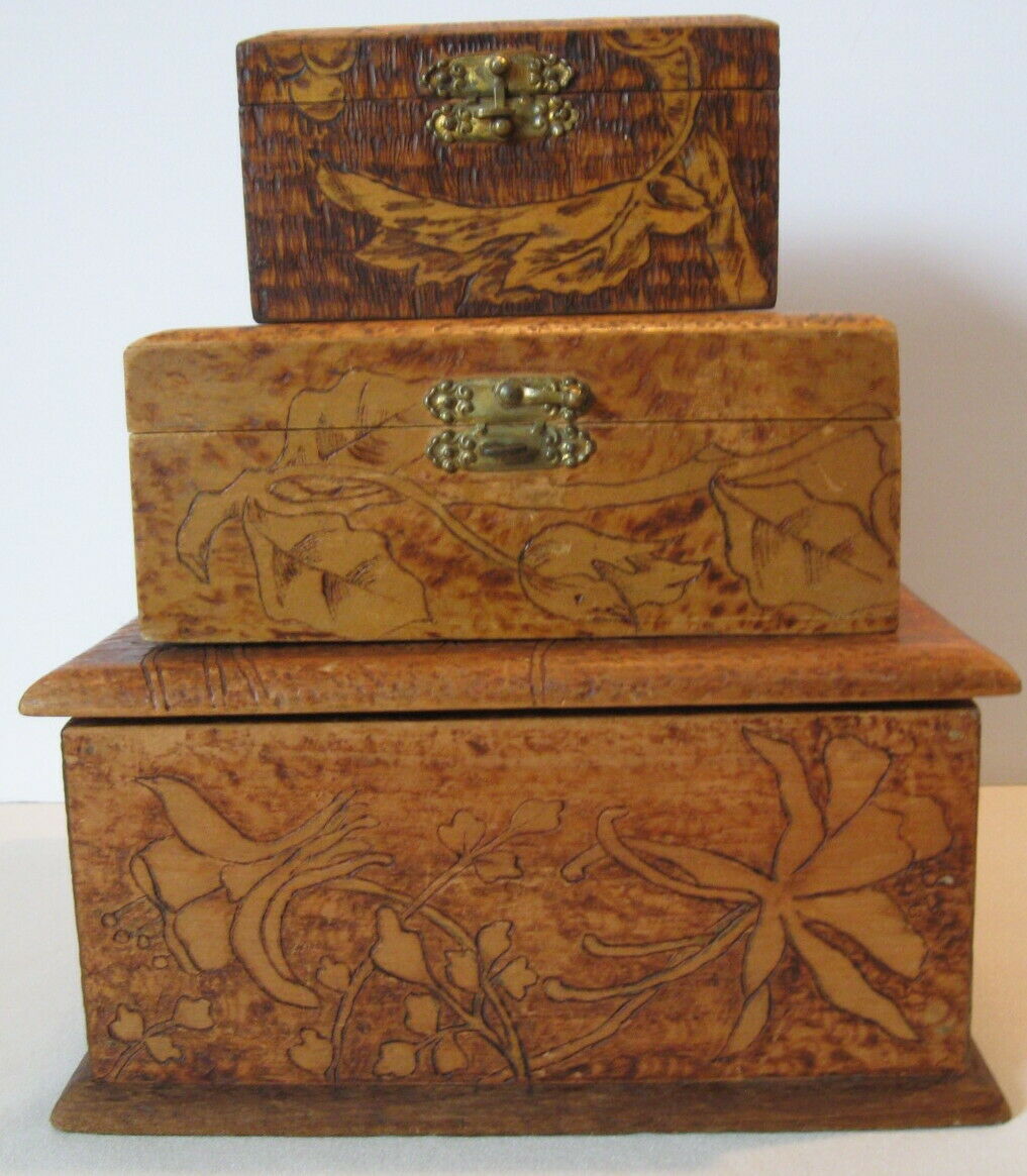 Title (ebay affiliate link): Lot of Three Pyrography (Wood Burned Decoration) Early 1900''s Era Boxes