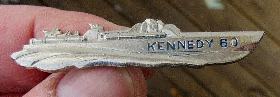 1960 JFK KENNEDY 60 PT 109 NAVY BOAT BAR PIN PRESIDENTIAL CAMPAIGN PINBACK BADGE