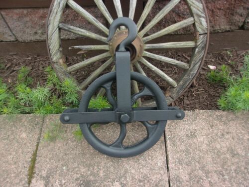 VINTAGE CAST IRON WHEEL WELL BARN PULLEY { MADESCO }