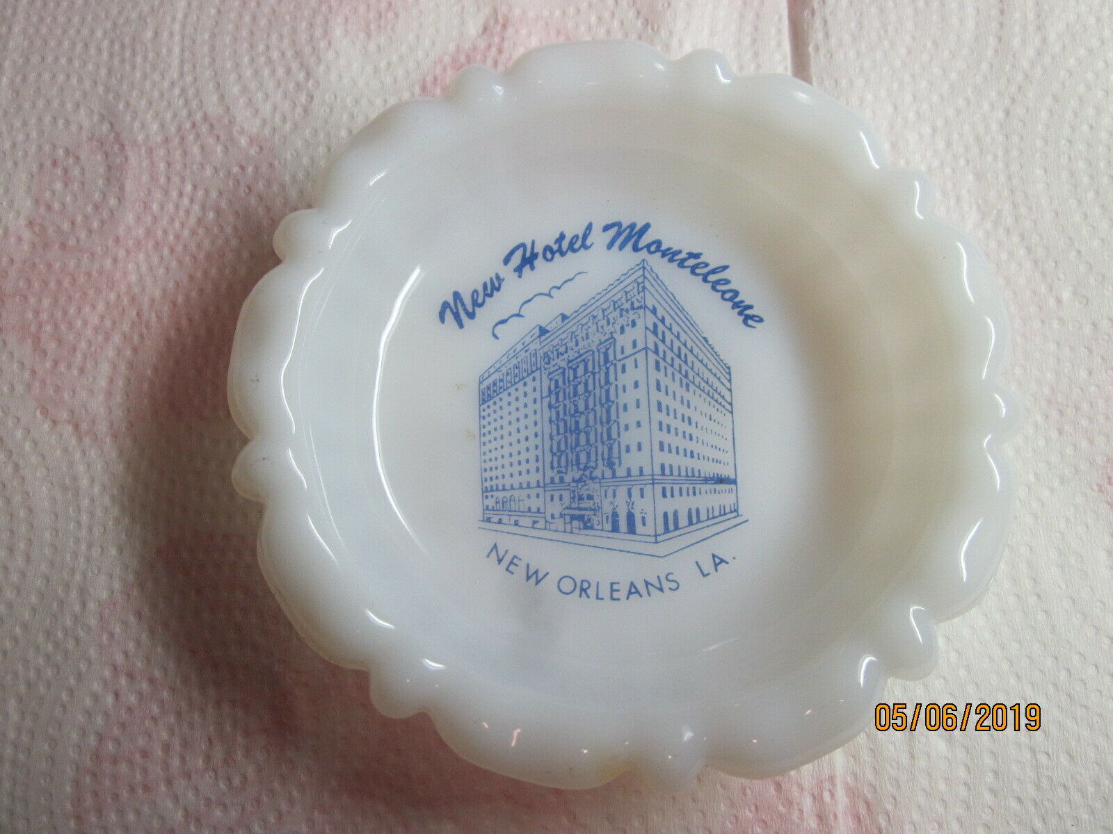 NEW ORLEANS "NEW HOTEL MONTELEONE" VINTAGE MILK GLASS ASHTRAY