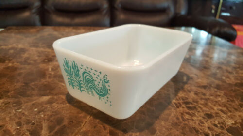 Title (ebay affiliate link): Pyrex blue Turquoise on Milk Glass Refrigerator Box 0502 1 1/2 pint, NO LID.