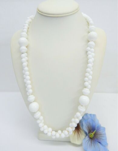 VINTAGE MIRIAM HASKELL SIGNED WHITE MILK GLASS CLUSTER BEAD NECKLACE 26"