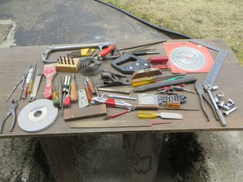 Title (ebay affiliate link): Lot 40+ Odd Old Tools - Cutters - Wrenches - Ratchet - Saw Blade - Bits - Stones