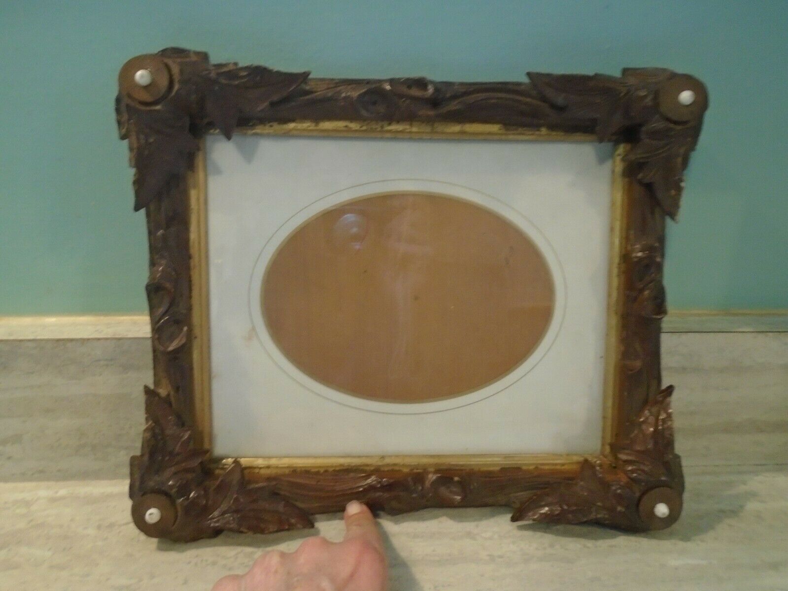 Antique Black Forest Adirondack Picture Frame Heavily Carved Porcelain Buttons