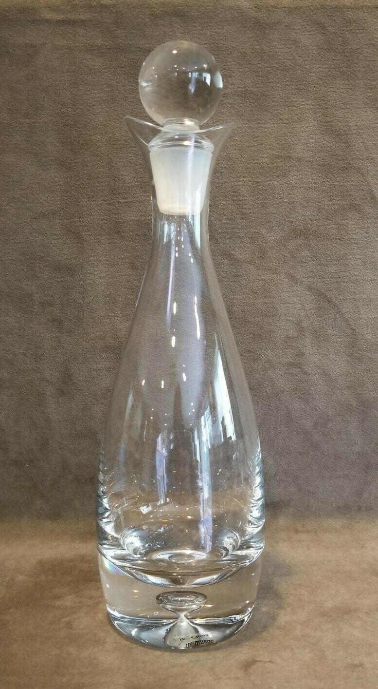 Clear Glass Decanter with Glass Stopper Hand Blown 11" Elegant Clean Lines