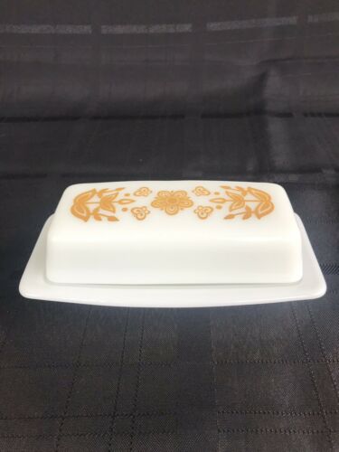 Pyrex Corning Ware Vintage Gold Butterfly Milk Glass Butter Dish 1/4 lb