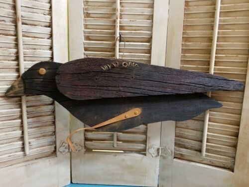 Title (ebay affiliate link): Primitive Handcrafted Wooden Crow Wall Door Hanger ~Folk Art ~ Raven