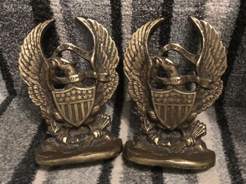 Two Antique Hubleys Vintage Brass Book Ends American Eagle USA Mancave Office
