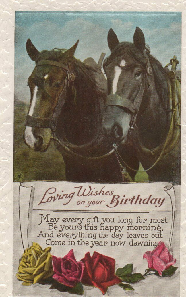 VINTAGE BIRTHDAY GREETING postcard: SHIRE HORSES