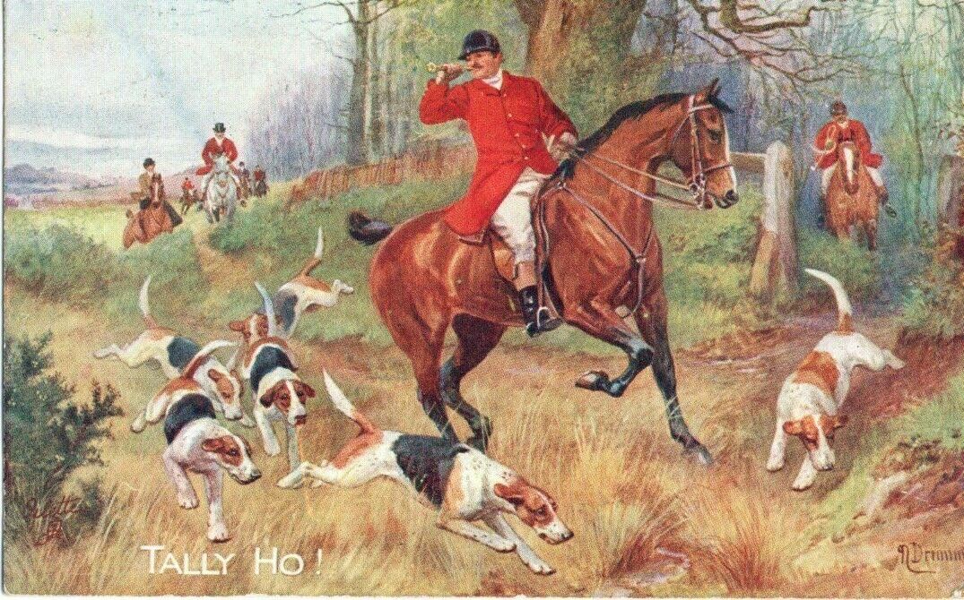 VINTAGE TUCK ART postcard: HUNTING HORSES & HOUNDS TALLY HO! by N DRUMMOND 3194