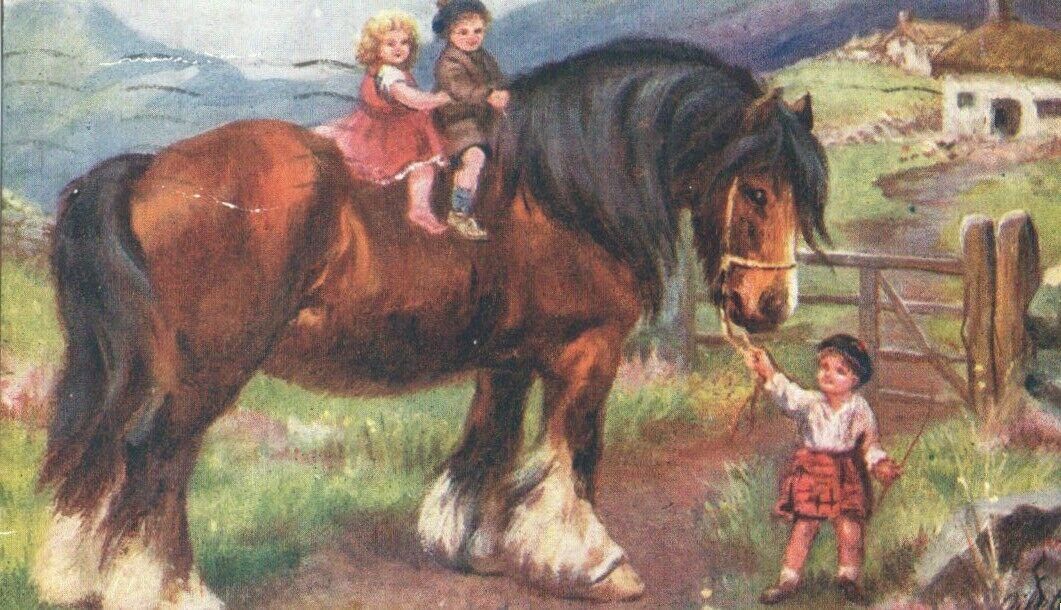 Title (ebay affiliate link): VINTAGE TUCK ART postcard: children & CLYDESDALE HORSE by N DRUMMOND 3109