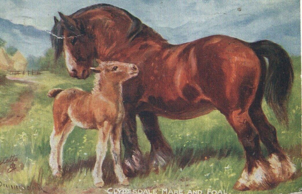 Title (ebay affiliate link): VINTAGE TUCK ART postcard: CLYDESDALE HORSE & FOAL by N DRUMMOND 3109