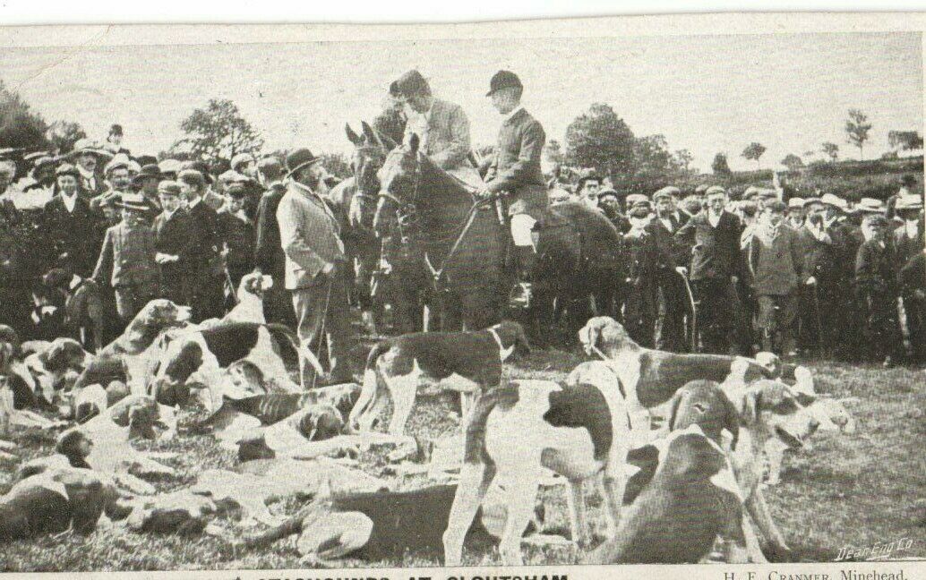 VINTAGE postcard: HORSES & DEVON & SOMERSET STAGHOUNDS CLOUTSHAM 1904