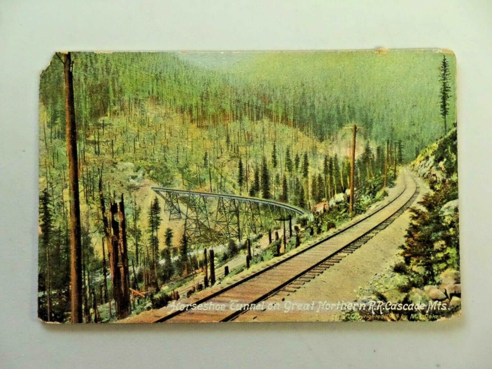 Title (ebay affiliate link): Vtg. Horseshoe Tunnel on Great Northern R.R. Cascade Mts. 1908 Postcard 4176