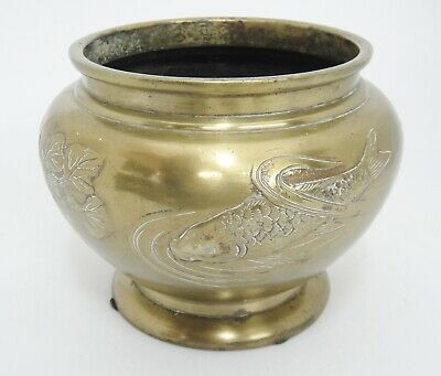 Title (ebay affiliate link): Antique Brass Pot Jardiniere with Embossed Fish Koi Incised Leaves 4.5" Tall