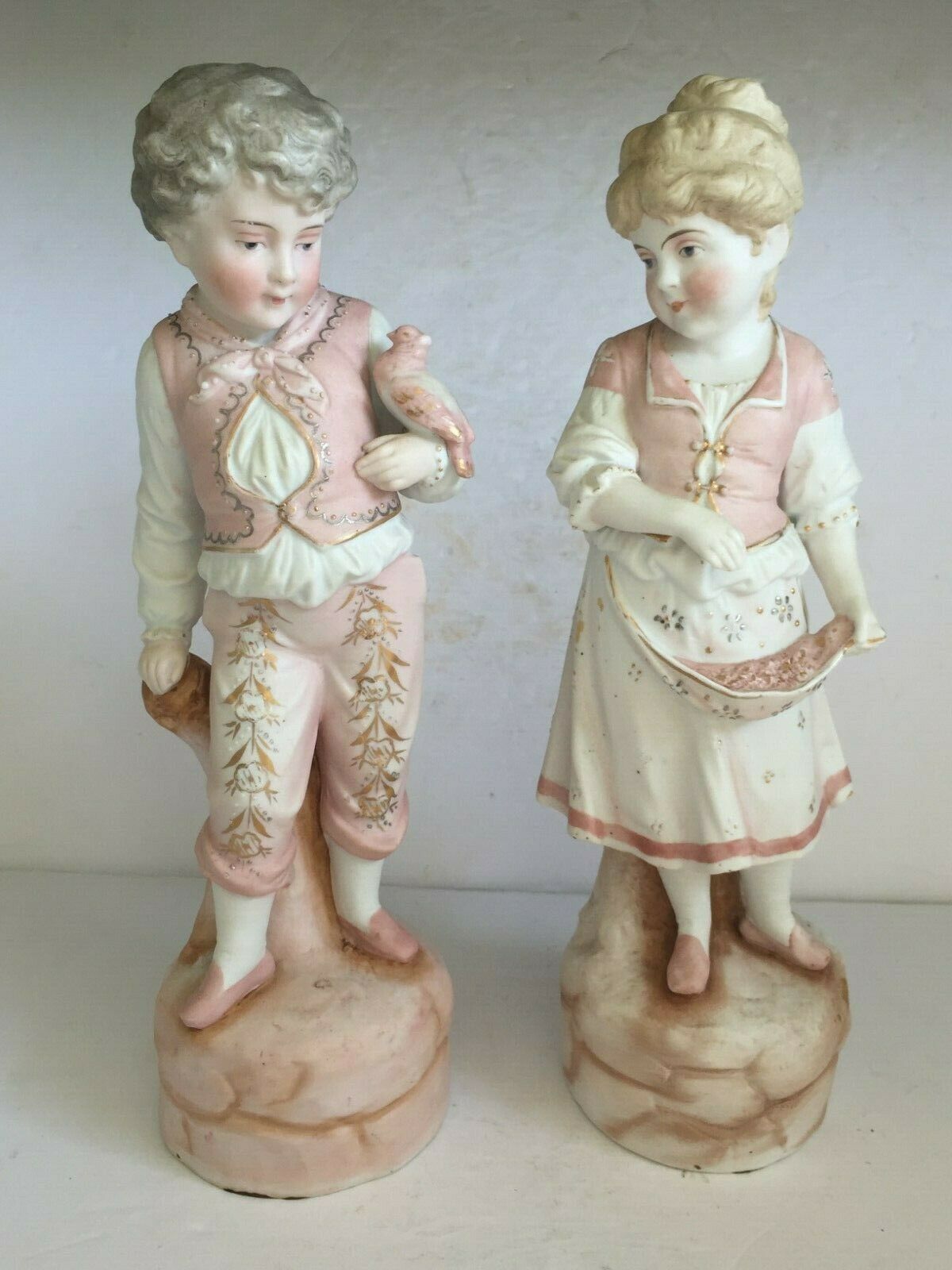 Original Pair Antique Victorian German Bisque Porcelain BOY GIRL Figurines 12"