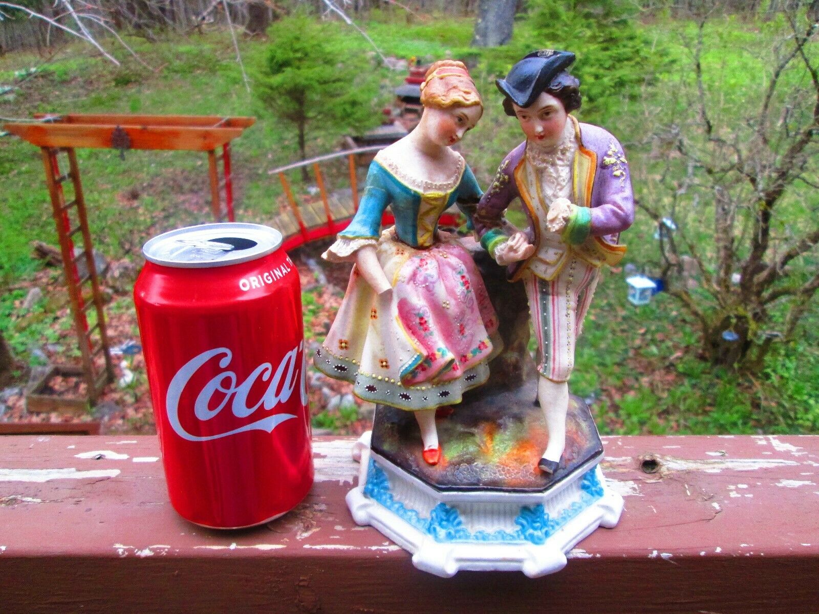 Antique Porcelain Art Pottery Man,Woman Figurine, Group-Crossed Swords-Lamp Base
