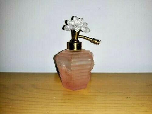 1930s~ART DECO PERFUME BOTTLE 3-D FLOWERS~PINK SATIN GLASS~LIOC