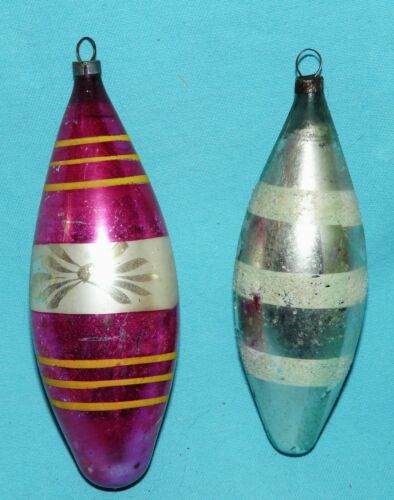 2 Antique Vtg~German TORPEDO TUBES~Mercury Glass Xmas Ornaments~4.5 & 5"~Mica