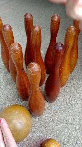 Vintage Bowling Ten 10 Pin Set Skittles Wooden Game Antique