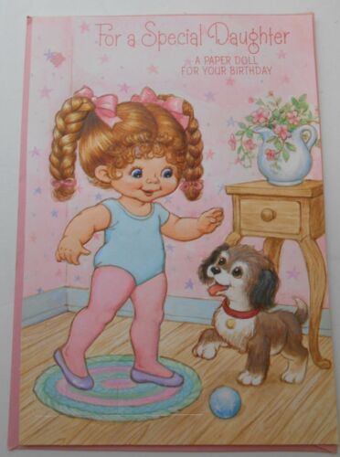 Vintage UNUSED Hallmark Card Girl Birthday Paperdoll With Cute Puppy + Envelope