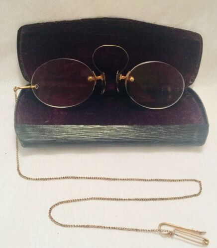 Title (ebay affiliate link): ANTIQUE GOLD Tone / Filled? PINCE NEZ Spectacles with Long Clip Chain and Case