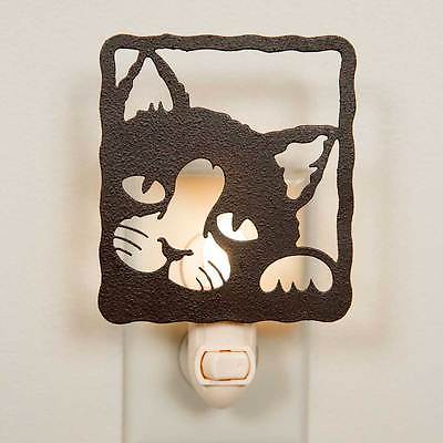 Title (ebay affiliate link): Country Primitive Metal Curious Cat Night Light Rustic Brown