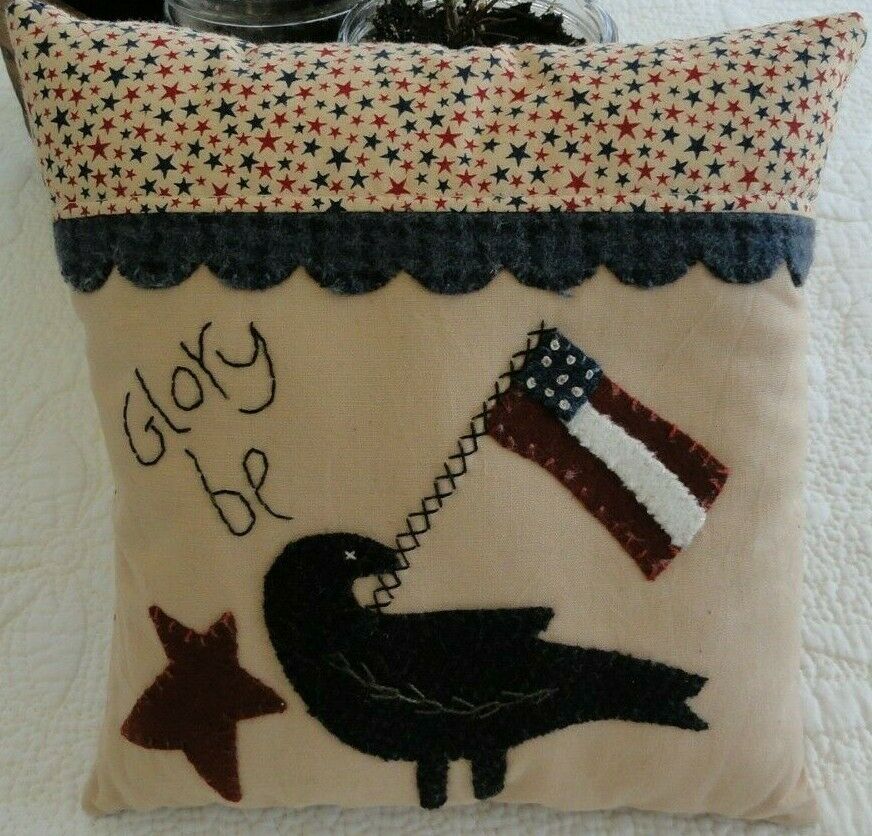 Title (ebay affiliate link): pRiMiTiVe Americana Wool Applique Pillow~Glory Be~Patriotic Crow~Memorial Day~